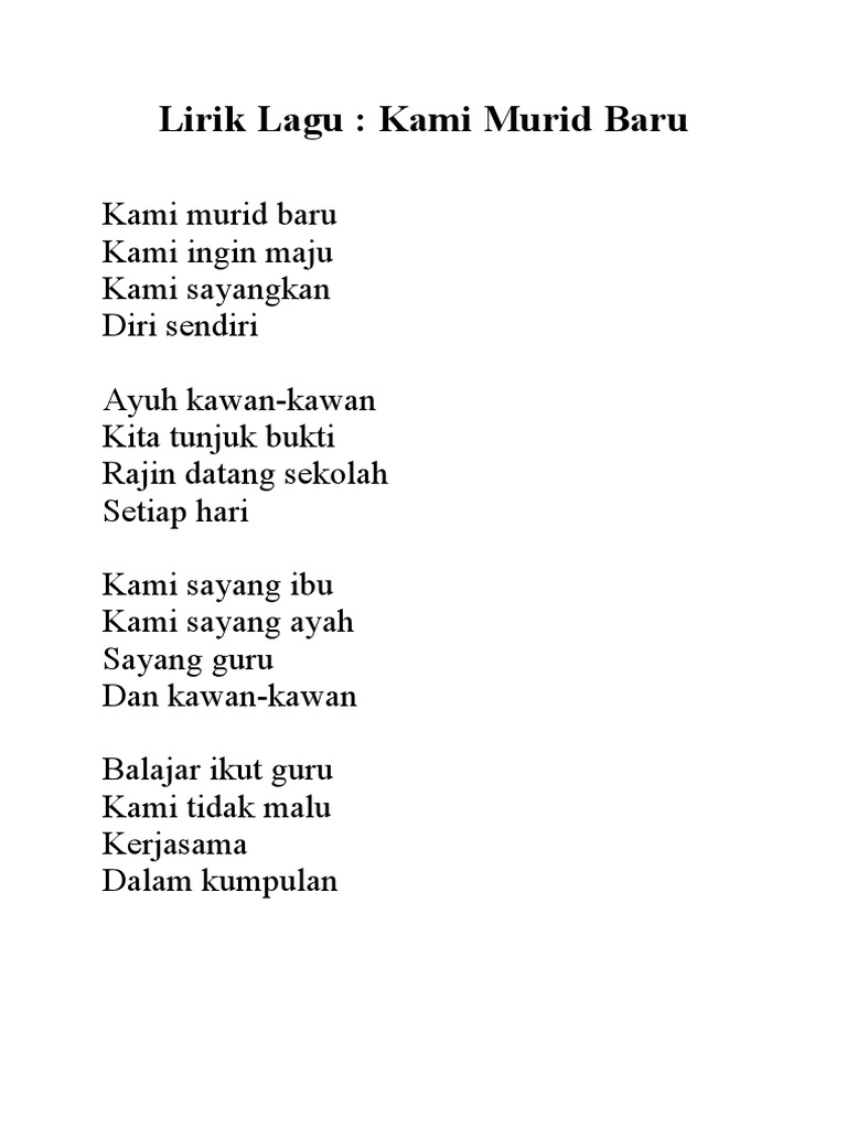 . Through the spirit of Islam. Kau brikanku urapan yang baru saat ku bersekutu denganMu. Lirik Lagu Kami Murid Baru - Lagu Transisi Tahun 1.